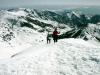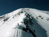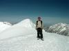 On Sun. April 17, 2005, the usual suspects† hiked from the Tram up the ridge to the East Twin, across the ridge to the West Twin, and skied down Pipeline. Click on the thumbnails to reach the corresponding pages; the pages include navigation links to walk through the photos in the order shown below. These photos were taken by Rick Gardiner.